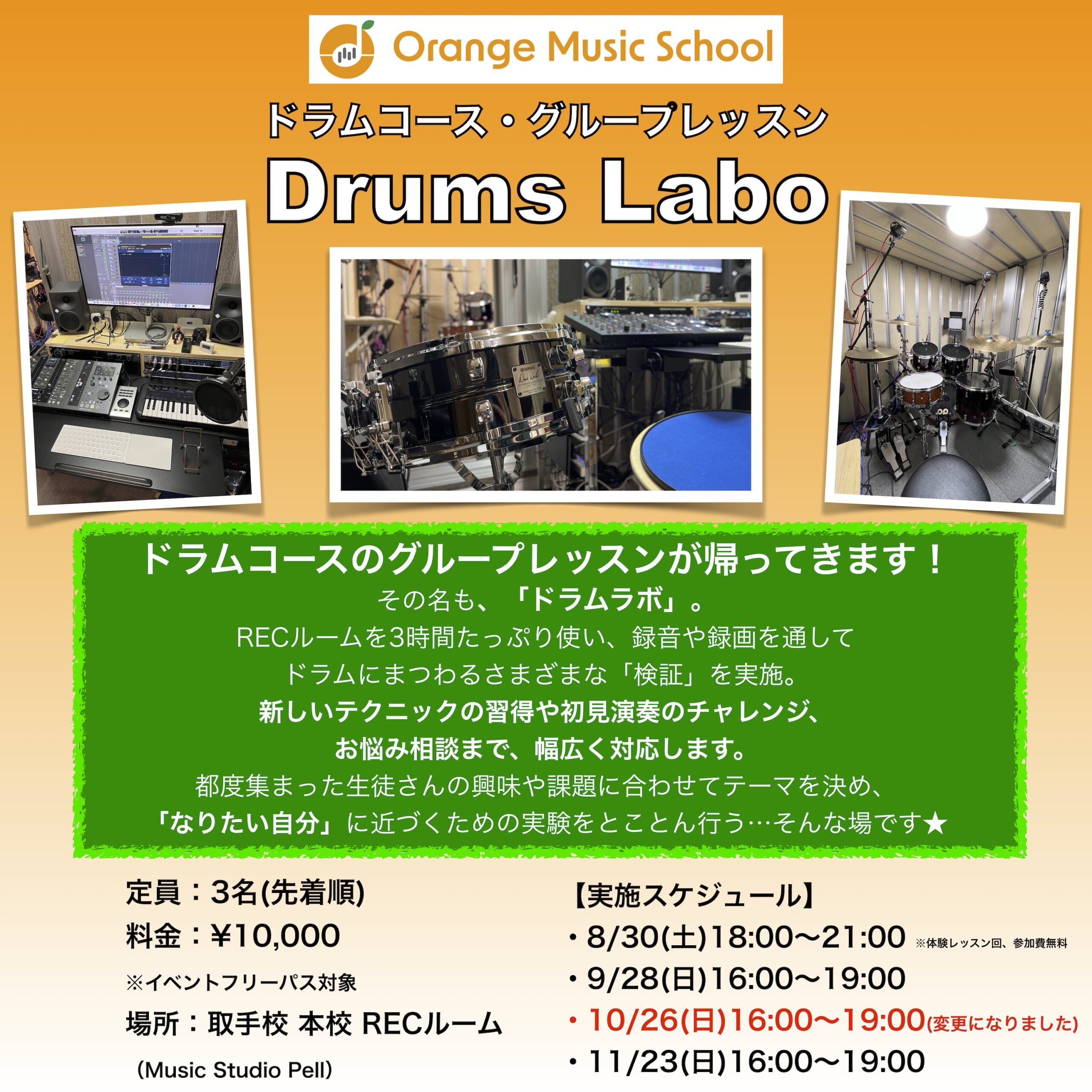 Orange Music Schoolでかつて行われていた、月イチの生ドラムのレッスンが復活します!